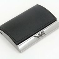 Лазерная гравировка логотипа на пластиковой визитнице.